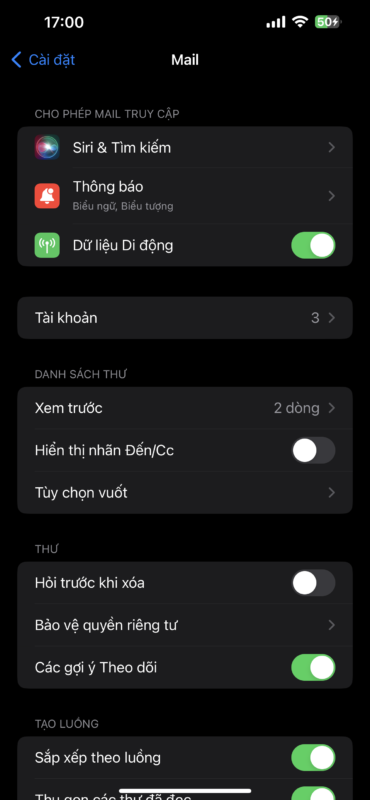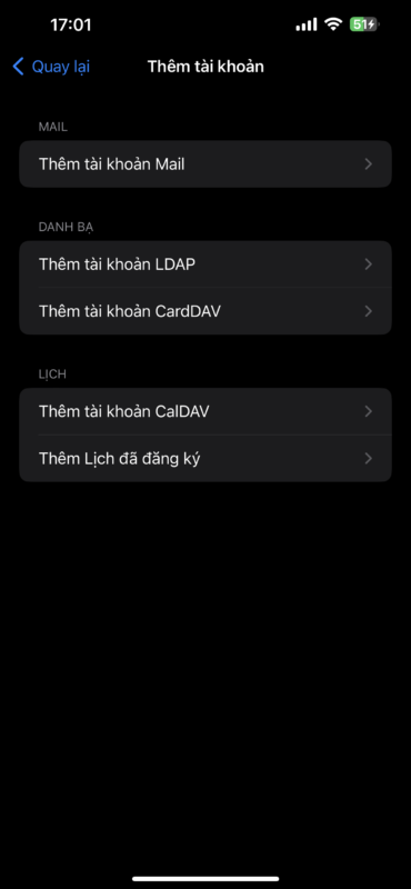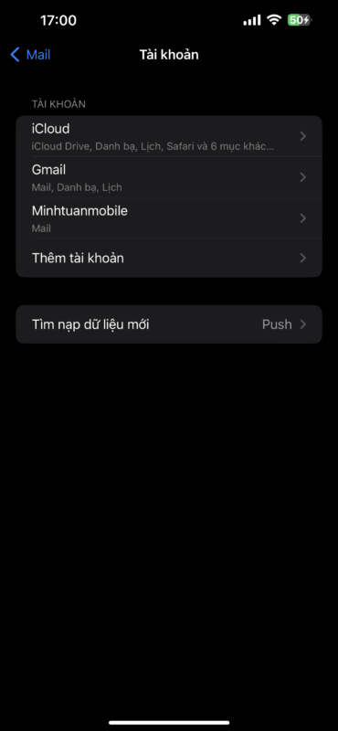 Bước 1: Truy cập Cài đặt > Mail > Tài khoản > Thêm tài khoản > Khác > Thêm tài khoản Mail